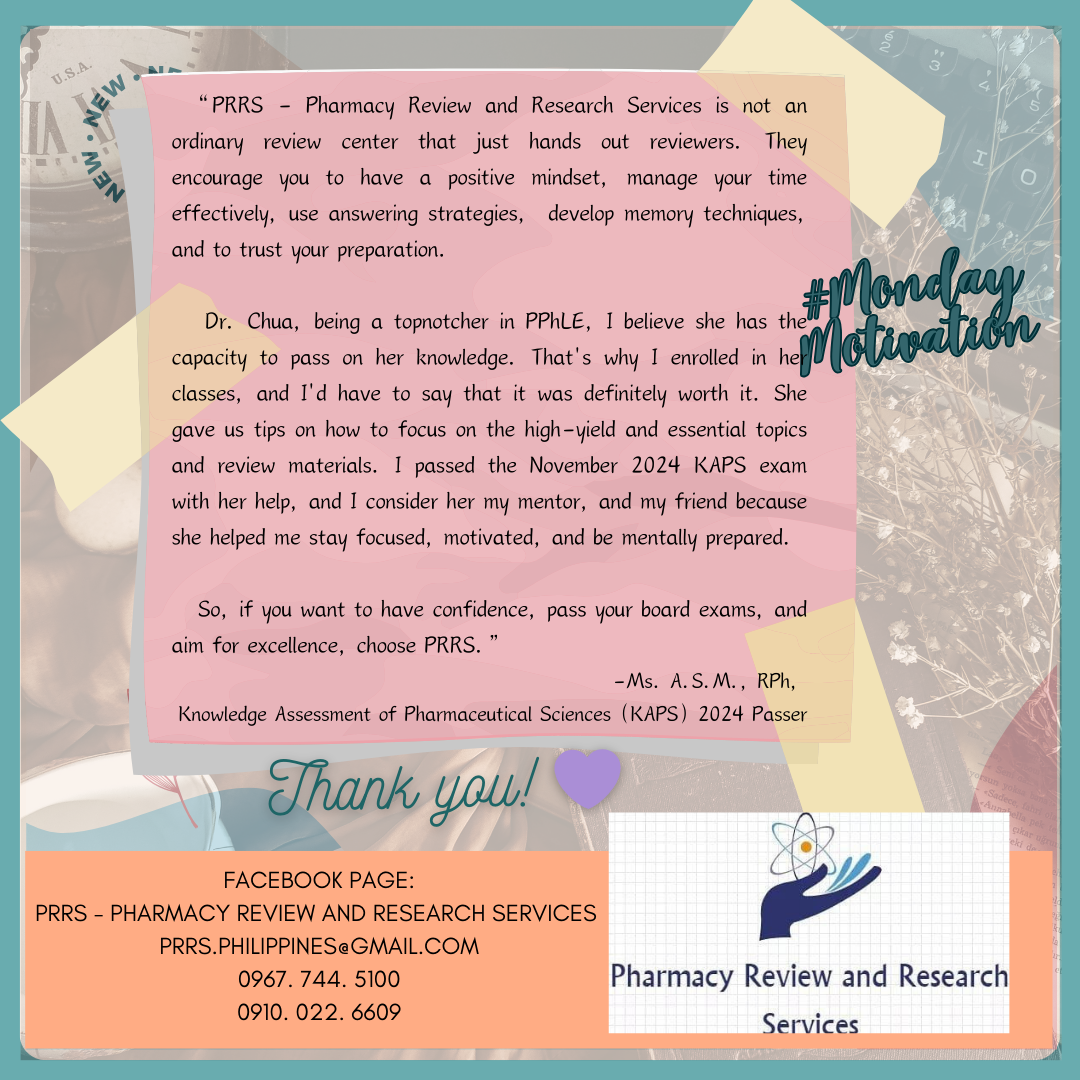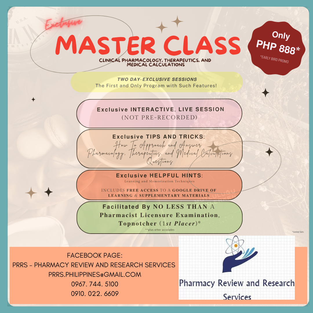 โœ…ย Facilitated by ๐๐Ž ๐‹๐„๐’๐’ ๐“๐‡๐€๐, a ๐—ฃ๐—ต๐—ฎ๐—ฟ๐—บ๐—ฎ๐—ฐ๐—ถ๐˜€๐˜ ๐—Ÿ๐—ถ๐—ฐ๐—ฒ๐—ป๐˜€๐˜‚๐—ฟ๐—ฒ ๐—˜๐˜…๐—ฎ๐—บ๐—ถ๐—ป๐—ฎ๐˜๐—ถ๐—ผ๐—ป ๐—ง๐—ผ๐—ฝ๐—ป๐—ผ๐˜๐—ฐ๐—ต๐—ฒ๐—ฟ (๐Ÿญ๐˜€๐˜ ๐—ฃ๐—น๐—ฎ๐—ฐ๐—ฒ๐—ฟ), University of the Philippines alumna and former faculty member, Educator (Years of Collegiate Teaching & Licensure Review Lecture-Tutorial (PHLE, FPLQEE, NMAT, UCAT, SHSEE) Experience with Certificate for Professional Teaching Program, with a Master's Degree in Occupational Health, Clinical Pharmacist, Researcher & Author (International & National Publications and Presentations), Doctor of Medicine (full scholar)